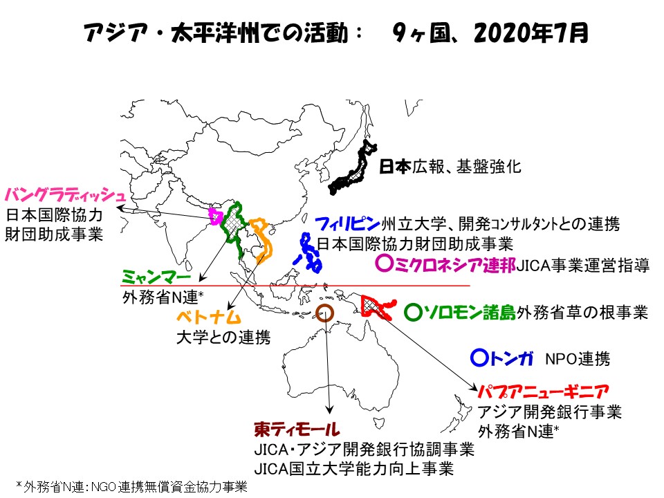 | 活動国 | 助成/発注/連携 | 名称 | 期間 | 協力機関 |