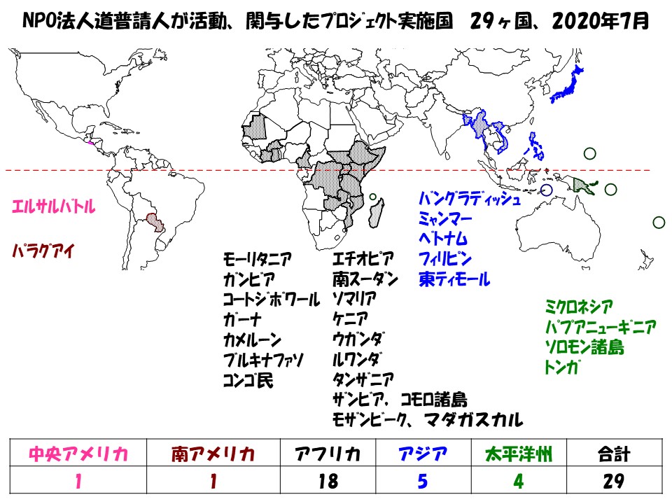 | 地域 | 中米 | 南米 | アフリカ | アジア | 太平洋州 | 合計 |