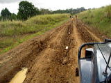 CAREの連絡車で現地道路状況を視察、現地スタッフが周辺環境(沿線に6つの村)、交通量(一日20台程度、ハイラックス、2tダンプ)砂利採取箇所やキリスト教関係施設のゲストハウスや利用可能なトラクターを確認。また、試験施工に適しそうな場所を選定。